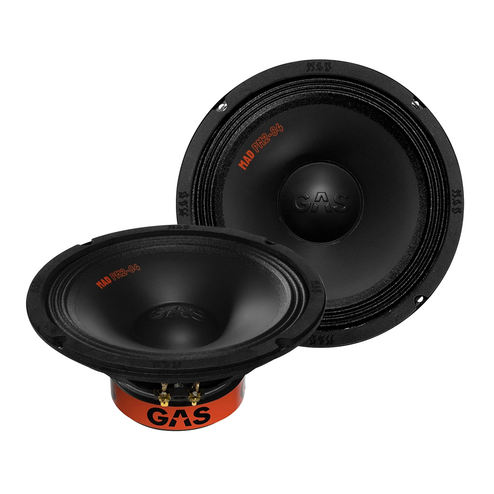 GAS MAD PM2-84 är PM2-seriens större midbasar och ersätter de grymma PSM84! Ett par extremt kapabla 8" midbasar som leverera grymt mycket ljud Dessa kaxiga midbasar har utrustats med en hög känslighet på 95 dB, tålig svart och bestruken papperskon, en snygg dustcap med 3D-relief samt en rejäl stålkorg med strukturlack. Det kanske allra mest imponerande är att GAS pressat ner resonsansfrekvensen till galna 70 Hz. Galet mycket (bra) ljud för pengarna!