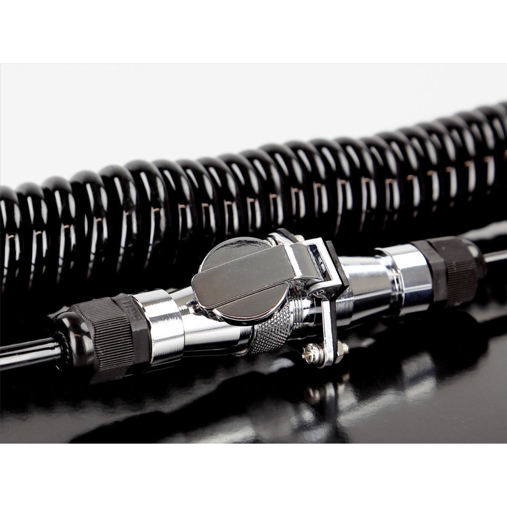 - Patentoidut kiinnikkeet spiraalikaapelilla, joka helpottaa kaapelin irrottamista ajoneuvosta ja perävaunusta
