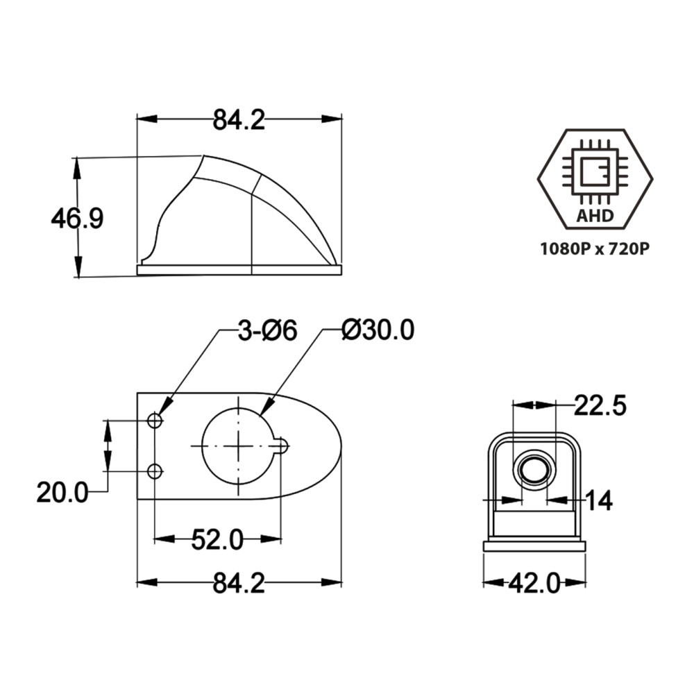 ACV 772000-6709 on AHD-tyyppinen taaksepäin suuntautuva kamera, joka on suunniteltu kuljetuksiin ja matkailuautoihin. Kamerassa on pisaranmuotoinen rakenne ja se on varustettu lasilinssillä paremman kuvalaadun saavuttamiseksi. Se soveltuu jatkuvaan käyttöön ja on asennettava oikein optimaalisen suorituskyvyn varmistamiseksi.