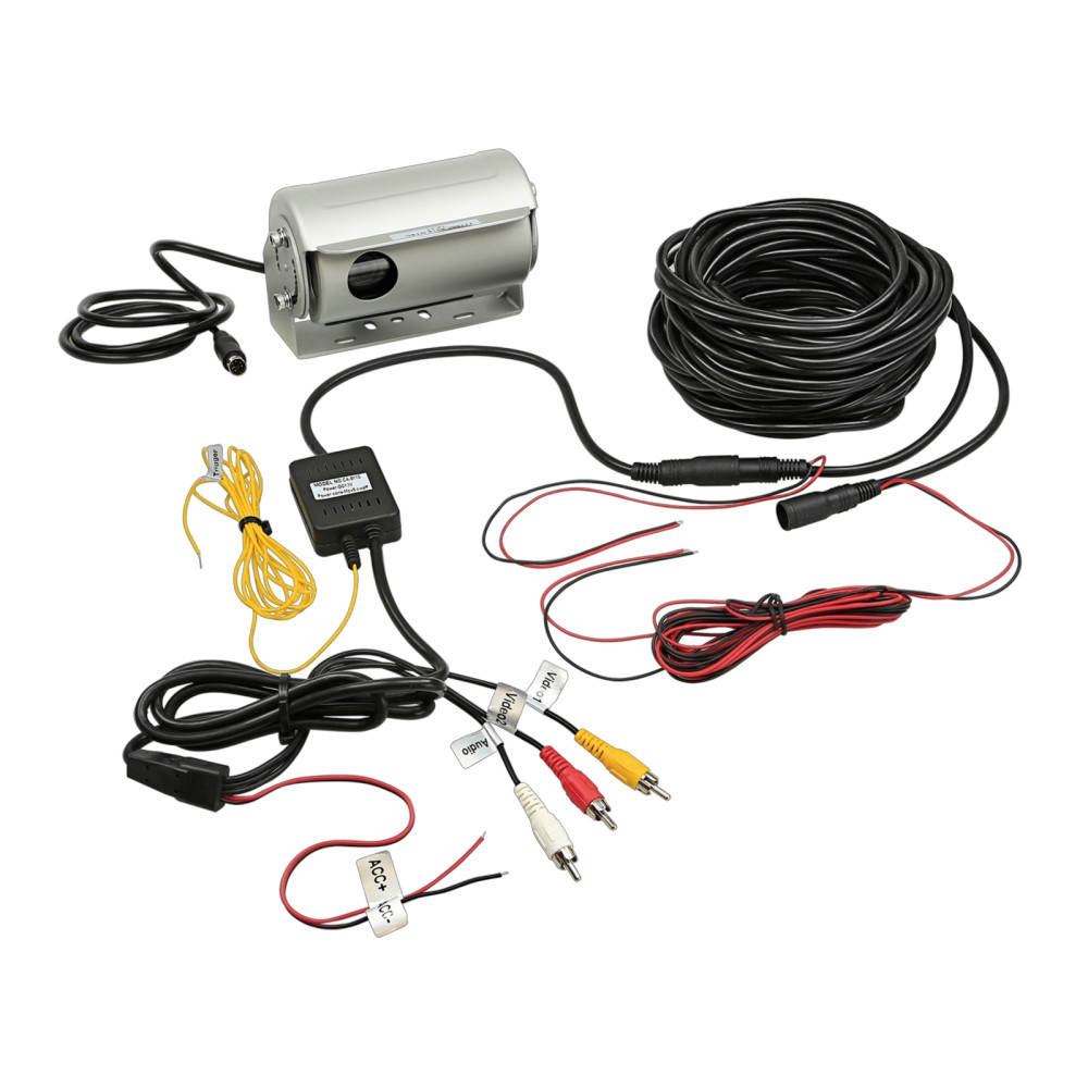 Tämä kamera soveltuu jatkuvaan käyttöön ja se tulisi asentaa huolellisesti. Ennen asennusta suositellaan tarkistamaan näkökulma ja kameran säätö asennuspaikalla testimonitorilla. Kamerassa on käyttöjännite +12V ja se liitetään helposti mukana tulevalla kaapelilla. Liitännät sisältävät punaisen kaapelin +12V:lle, mustan kaapelin maadoitukseen ja keltaisen kaapelin videosiirtoon. Kamerassa on myös RCA-liittimiä ääntä ja videota varten, mikä tekee sen liittämisestä helppoa monitoriin, jossa on useita video-intoja.