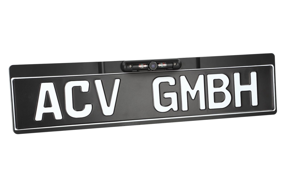 ACV 772000-6041 on taaksepäin suuntautuva kamera AHD-teknologialla, suunniteltu integroitavaksi EU:n rekisterikilpikiinnikkeisiin.