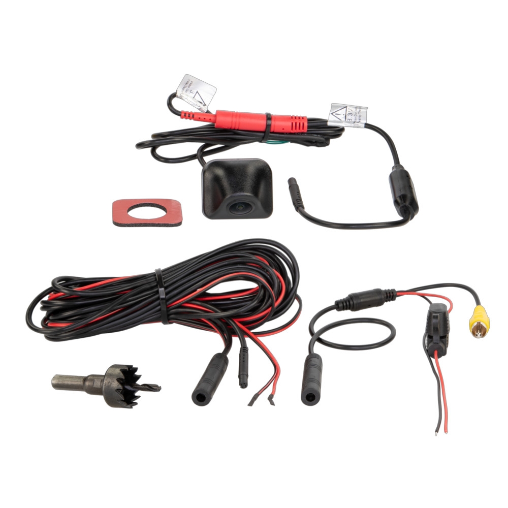Taaksepäin suuntautuva kamera on suunniteltu jatkuvaan käyttöön, ja sen näkökulma ja kameran asetukset on tarkistettava asennuspaikalla testimonitorilla ennen asennusta. Kameran käyttöjännite on +3V, ja se voidaan syöttää +12V tai +24V ilman jännitemuunninta. On tärkeää huomata, että +3V:n liittäminen toimituksessa voi vahingoittaa kameraa. Liitännät ovat seuraavat: punainen +12V / +24V, musta auton suoraan maadoitukseen/GND ja keltainen RCA videolle.