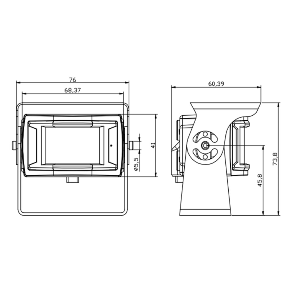 ACV 771000-6012 on universaali peruutuskamera, joka on suunniteltu kuljetusajoneuvoille ja matkailuautoille, ja siinä on 170° laajakulma. Kamerassa on ohjausviivat ja yökuvaustoiminto, mikä tekee siitä käyttökelpoisen eri valaistusolosuhteissa.