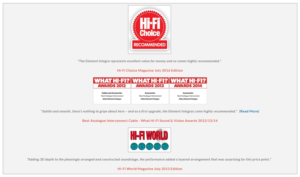 På deras hemsida får man en lättöverskådlig presentation och kan djupdyka med principerna och läsa om grundläggande tekniska egenskaper och fulllständiga elektriska specifikationer för varje kabelmodell. Man har tagit emot en uppsjö rosade tester och utmärkelser.