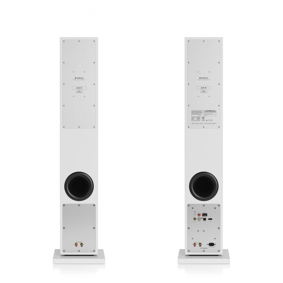 Kun WiFi ei ole käytettävissä, on Bluetooth 4.2. Takana on myös RCA-tulo ulkoisille lähteille, kuten CD-soittimelle tai levysoittimelle (RIAA:lla). Kuten sarjan muutkin mallit, A38 W voi uudelleen suoratoistaa ääntä näistä lähteistä muille Audio Pro -kaiuttimille verkossa, lukuun ottamatta HDMI ARC:ta.
