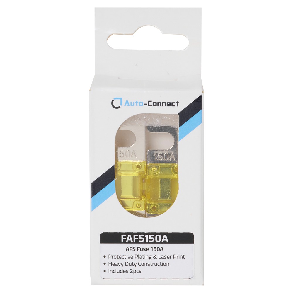 Auto-Connect FAFS150A on 2-pakkaus Mini-ANL / AFS-sulakkeita, joiden nimellisvirta on 150A, tarkoitettu 12V-asennuksiin autossa, moottoripyörässä tai merijärjestelmissä. Kompakti ja kestävä sulaketyyppi, joka tarjoaa luotettavan ylivirtasuojauksen vahvistimille ja muulle ajoneuvoon asennetulle elektroniikalle.