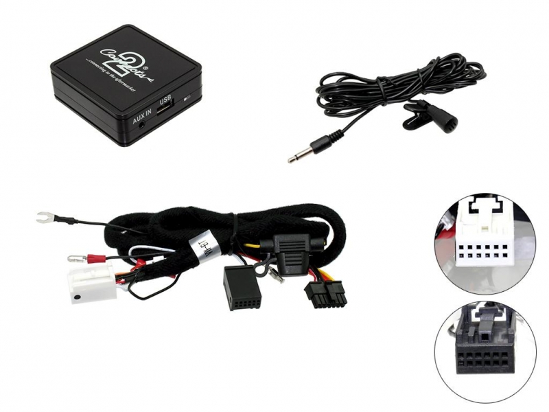 Blåtandsinterface med A2DP Blåtand, USB och AUX för huvudenheter med OEM-anslutning. Kopplas in i den ursprungliga CD-växlarporten på baksidan av din bilstereo, vilket ger dig ett högkvalitativt ljud. Vid handsfreesamtal kan du både svara och avsluta samtal via framspolningsknappen på din bilstereo. Så det är bara för dig att koppla in och njuta av trådlös musikuppspelning via dina smarta enhet.