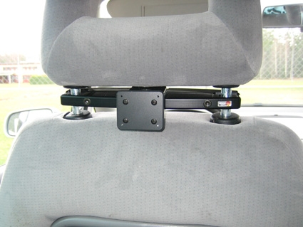 Kiinnike asetetaan etuistuimen niskatukeen. Voit asentaa sen itse muutamassa minuutissa, asennusohjeet sisältyvät. Kiinnikkeen asennuslevyssä on esiporatut reiät, jotka helpottavat pidikkeen asentamista.
