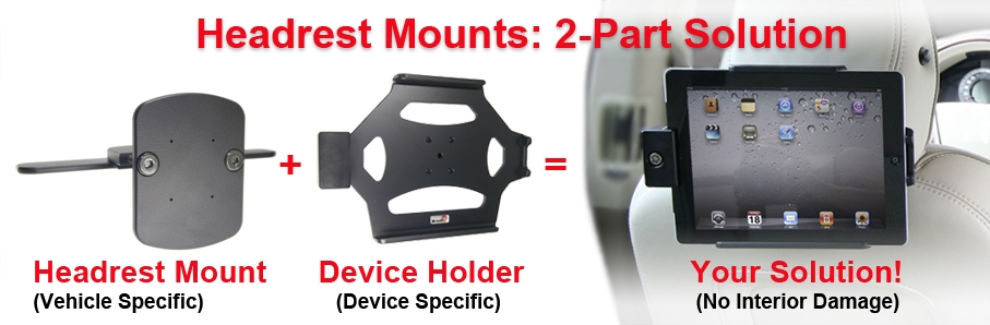 Broditsin pääntukikiinnike on autokohtainen ja toimii asennusalustana. Tarvitset myös pidikkeen laitteelle, jonka haluat asentaa. Löydät pidikkeet helposti hakemalla laitetta verkkosivuiltamme. Kaikki Broditin pidikkeet voidaan asentaa pääntukikiinnikkeeseen, mutta jotkut tablettipidikkeet on törmäystestattu ja hyväksytty käytettäväksi Broditin pääntuessa (etsi törmäystestimerkintä).