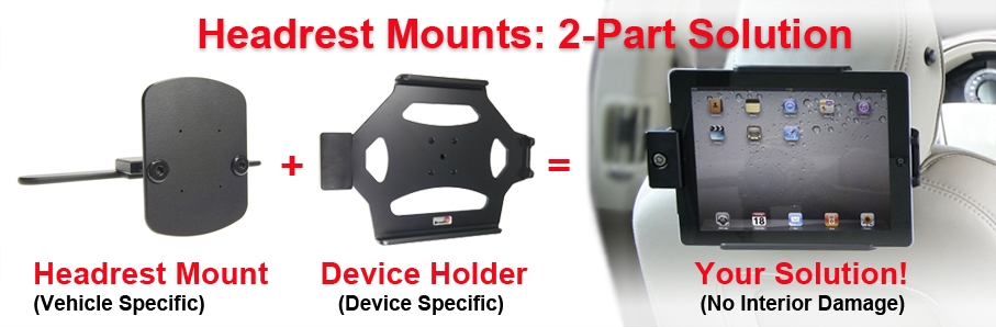 Broditsin pääntueteline on autokohtainen ja toimii asennusalustana. Tarvitset myös pidikkeen laitteelle, jonka haluat kiinnittää. Löydät pidikkeet helposti etsimällä laitteesi verkkosivuiltamme. Kaikki Broditin pidikkeet voidaan kiinnittää pääntuetelineeseen, mutta jotkut tablettipidikkeet on törmäystestattu ja hyväksytty käytettäväksi Broditin pääntuessa (etsi törmäystestimerkintä).