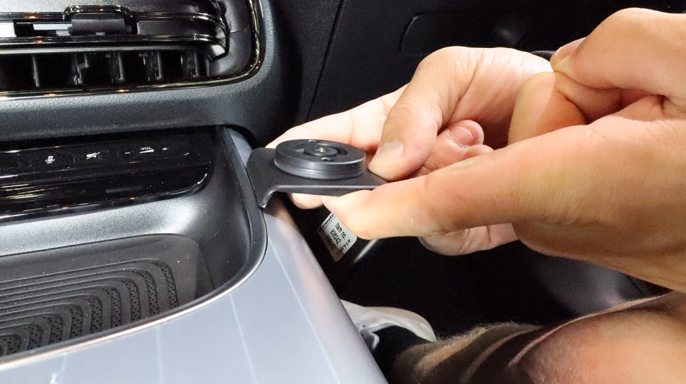 2. Vedä kiinnikkeen yläosa ylöspäin ja koukkaa yläreuna keskikonsolin reunaan.
