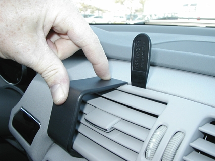 2. Aseta kiinnikkeen kulmikas alaosa ilmanvaihtoaukon kehyksen alle.