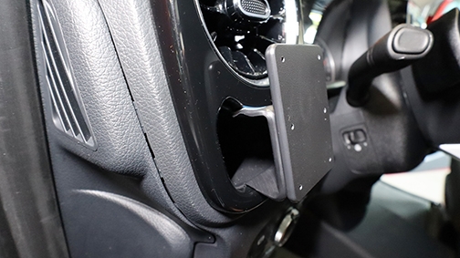 3. Paina kiinnikkeen yläosaa eteenpäin niin, että yläreuna lukittuu ilmastointiritilän kehyksen alle.