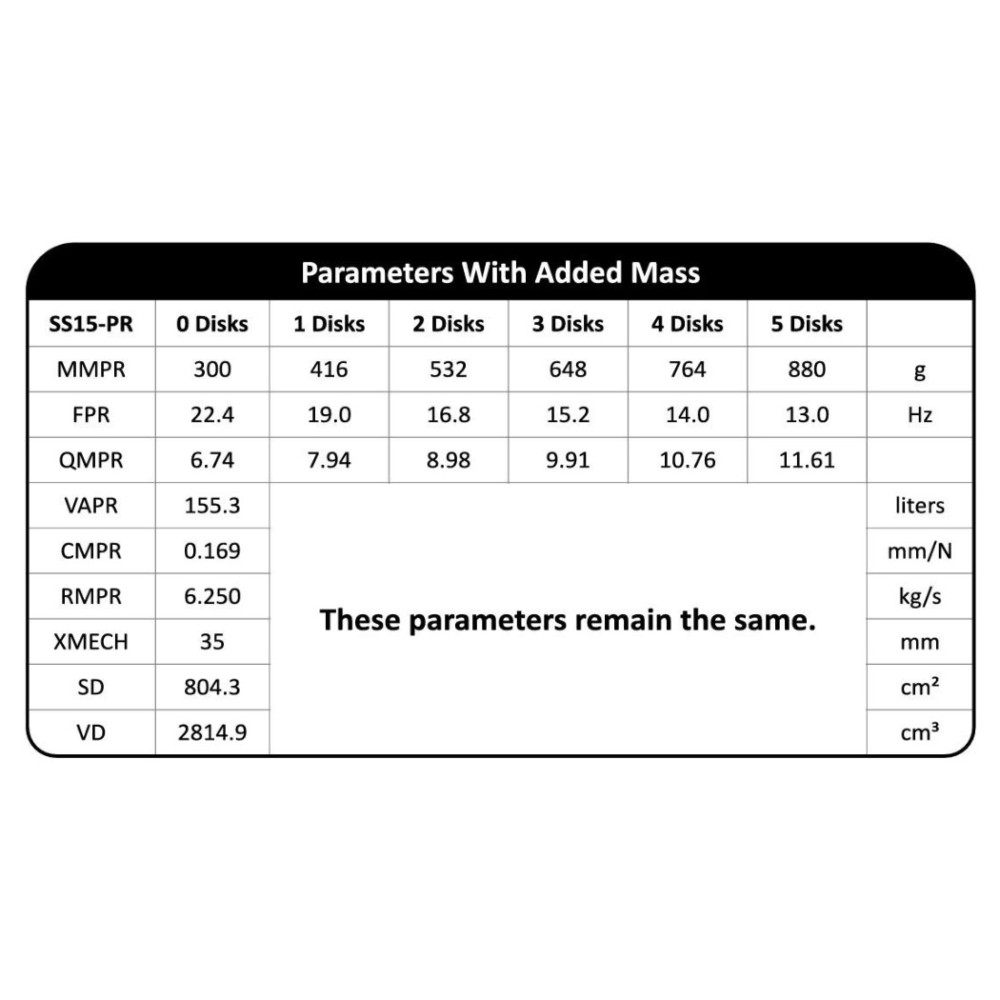 SS15-PR on rakennettu järjestelmiin, joissa passiivisen radiatorin täytyy pystyä liikkumaan kunnolla menettämättä vakautta. 35 mm:n liikepituudella ja suurella kartioalalla on hyvät edellytykset työskennellä yhdessä voimakkaampien bassoelementtien kanssa, ja mukana tulevat painot mahdollistavat toiminnan hienosäädön kotelotilavuuden ja toivotun virityksen mukaan. SMS-rakenne pitää lisätyn massan keskitettynä spiderin ja jousituksen välillä, mikä edistää tasaisempaa liikettä kuorman kasvaessa.