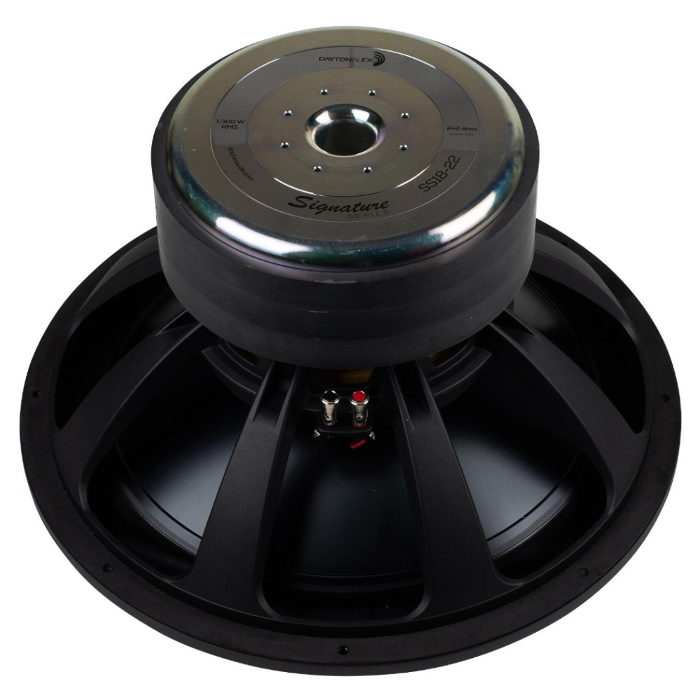 Dayton Audio SS18-22 on Signature-sarjan 18-tuumainen bassoelementti, jossa on kaksois-2 ohmin äänikelat, alumiinikartio ja 3 tuuman äänikela. Tässä on syvyys, kartioalue ja puhdas raaka voima, jotka asettavat sävyn. Resonanssitaajuus on 21 Hz, Xmax 26 mm ja 1300 W RMS asettavat SS18-22 raskaampaan luokkaan, mutta se ei ole vain suuri elementti, joka voi soittaa kovaa. Jäykkä kartio, voimakas moottori ja runsas jäähdytys tarjoavat myös paremman järjestyksen, kun heilahdukset ovat suuria ja teho pysyy korkeana pitkiä aikoja.