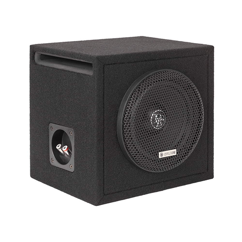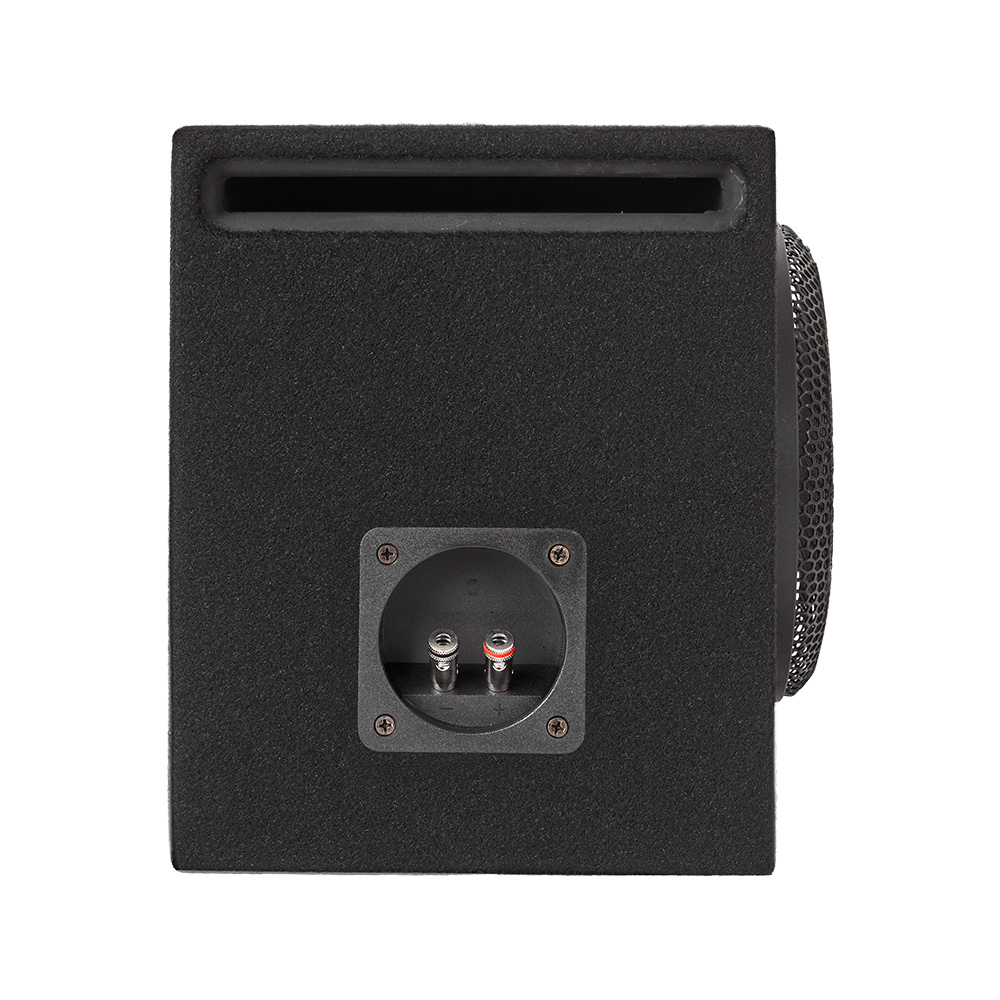 Kotelo on muotoiltu sulautumaan autoon, piilotettu sijoitus ja viimeistely tuntuvat huolitelluilta. Vakaa kotelo, selkeä terminaalin sijoitus ja metallinen suojaritilä tekevät asennuksesta vankan ja valmiin pitkäaikaiseen käyttöön. Aukkoportilla varustettu bassorefleksirakenne on valittu sen tehokkuuden vuoksi pienessä tilavuudessa ja sen kyvyn vuoksi säilyttää hallinta, kun äänenvoimakkuutta lisätään. Käytännössä tämä tarkoittaa bassoa, joka tuntuu tiukalta, joustavalta ja helppo integroida etujärjestelmään.