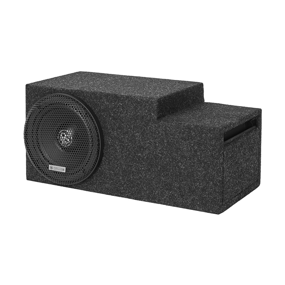 Kotelo on muotoiltu katoamaan autoon, piilotetulla sijoituksella ja viimeistelyllä, joka tuntuu huolelliselta. Vankka kotelo, selkeä liitinasettelu ja metallinen suojaritilä tekevät asennuksesta kestävän ja valmiin pitkäaikaiseen käyttöön. Bassorefleksirakenne aukkoportilla on valittu pienivolyymisen tehokkuutensa ja kyvynsä säilyttää hallinta äänenvoimakkuutta nostettaessa. Käytännössä se tarkoittaa pohjaa, joka tuntuu tiheältä, joustavalta ja helposti integroitavalta etujärjestelmään.