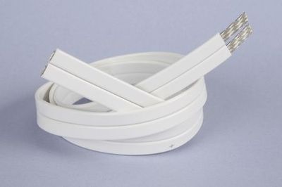 En superplatt kabel, endast 1,8 mm tjock och 11 mm bred, idealisk för väggmontering eller att lägga under en matta. På väggen används tex en dubbehäftande tejp som fäster på de flesta underlag.