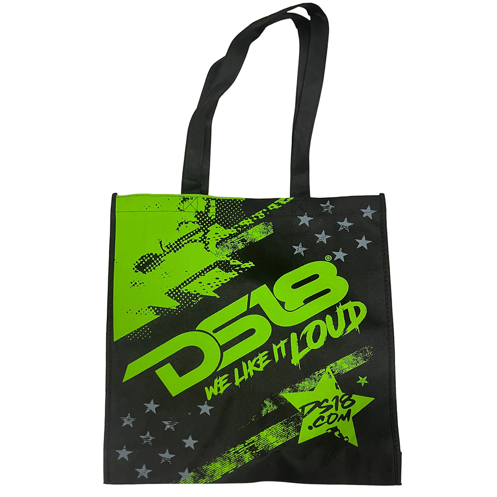 Kangaskassi, joka kantaa ylpeänä DS18-logoa. Tote-laukku sinulle, joka otat äänen vakavasti!