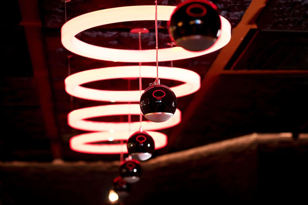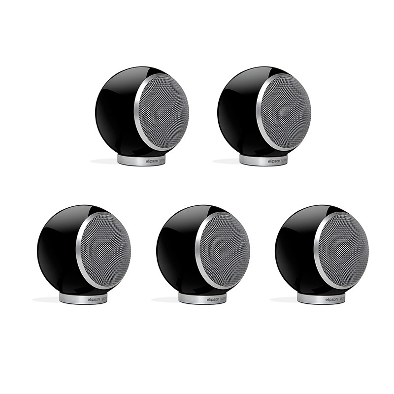 - Setti, jossa 5 kaiutinta, musta pallomuotoilu