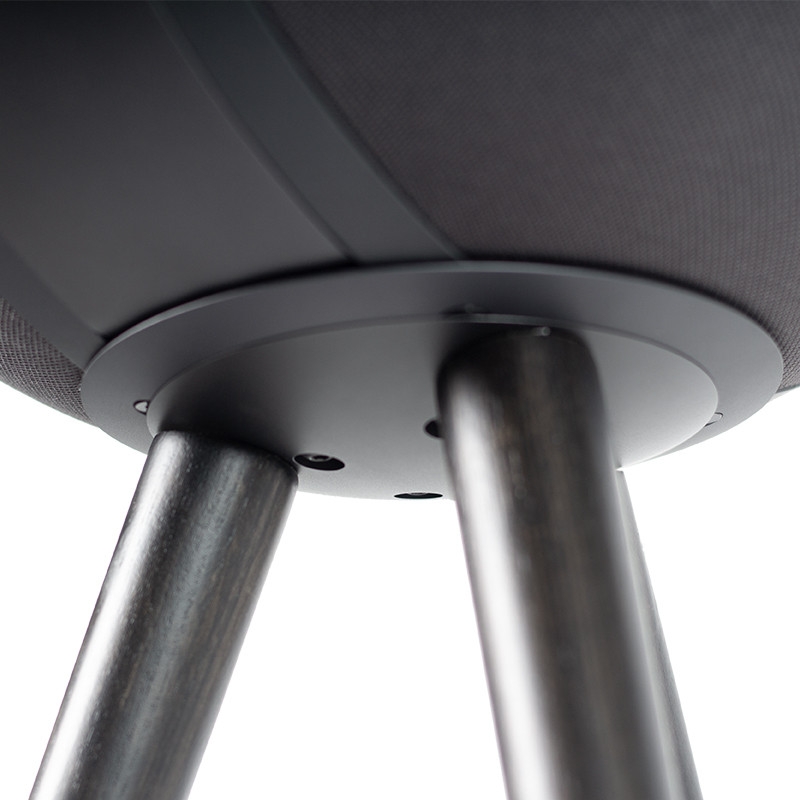 Telineessä on vakaa rakenne, jossa on metallinen jalusta ja puiset jalat, jotka tarjoavat sekä kestävyyttä että tyylikkään ulkonäön. Musta viimeistely sopii useimpiin sisustuksiin ja täydentää kaiuttimen muotoilua.