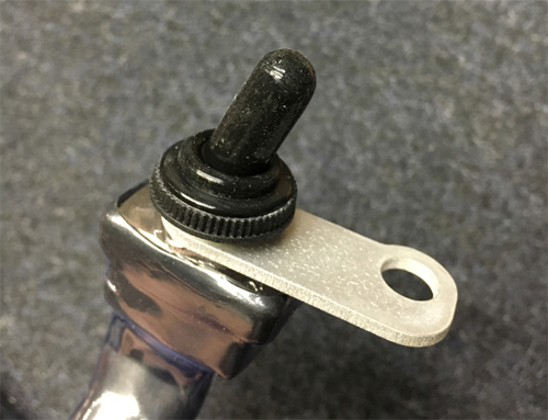 Aluminiumsfeste til strømbryter, monteres enkelt til et av styrets skruer.
