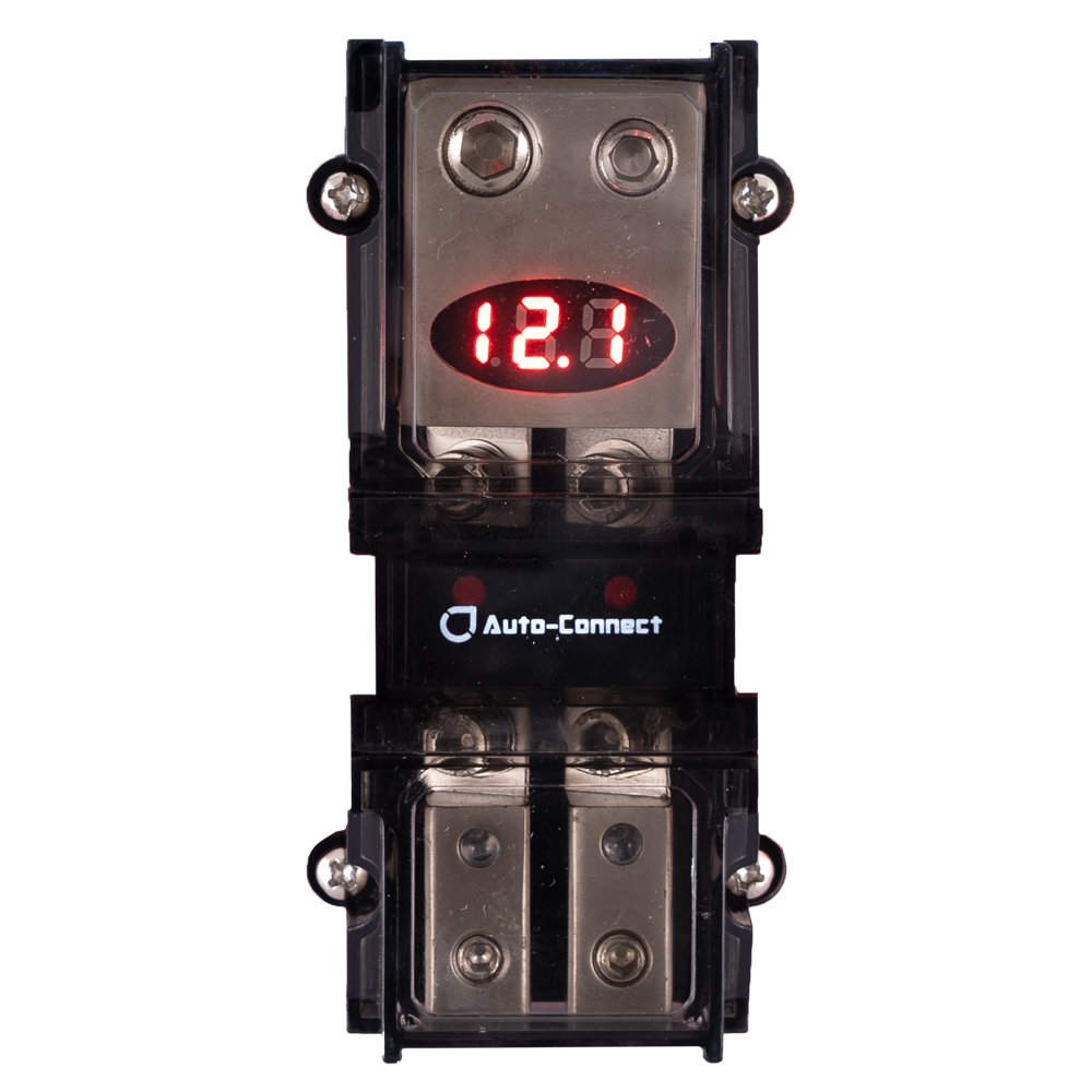 Auto-Connect mini-ANL säkringsblock med voltmätare, 2 st. säkringar
