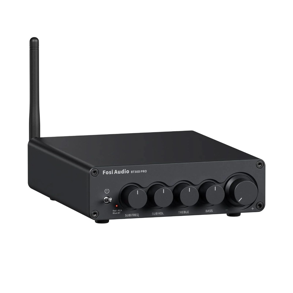 Fosi Audio BT30D Pro (32 V) on kompakti 2.1-kanavainen vahvistin, jossa on Bluetooth ja erillinen subwoofer-ohjaus, rakennettu Texas Instrumentsin kaksois-TPA3255-piirien ympärille. Se ohjaa kahta passiivista kaiutinta ja passiivista bassokaiutinta, samalla kun se voi syöttää aktiivisia laitteita pre-out-liitännän kautta. Mukana tulevalla 32 V, 5 A virtalähteellä se tuottaa jopa 165 W x 2 kaiuttimille ja jopa 350 W sub-kanavalle, mikä tekee siitä tehokkaan mutta sulavan ratkaisun työpöydälle, olohuoneeseen tai pienempään kotiteatteriin.