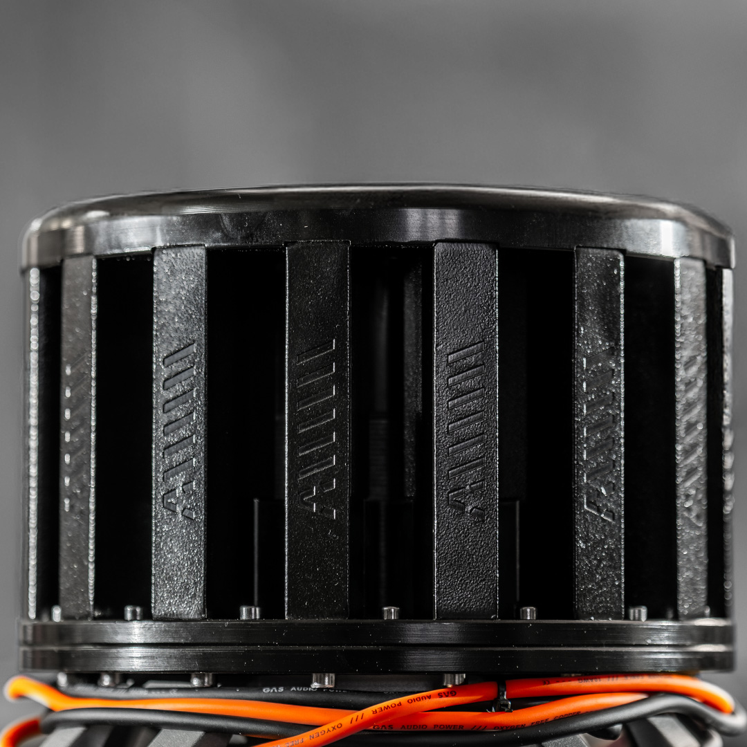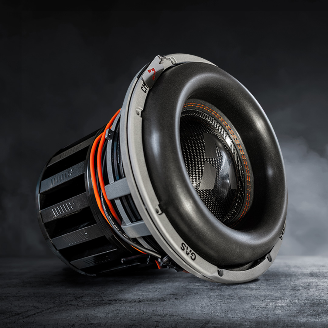 Tämä ei ole naapurisi bassoelementti. Tämä on yksi siisteimmistä tuotteista, joita olemme saaneet myydä. Kartioon GAS on valinnut materiaalin, jolla on kiteisiä ominaisuuksia, jotka parantavat jäykkyyttä ja nopeaa vasteaikaa, mikä lisää tehokkuutta, kun kartio asetetaan liikkeeseen ja minimoi ei-toivottujen resonanssien riskin korkeissa äänipaineissa. Kartiota suojaa räätälöity hiilikuituinen pölysuoja – kevyt, mutta erittäin vahva – joka suojaa subwooferin sisusta ja tukee kammiota entisestään. Niissä valtavissa voimissa, jotka syntyvät, kun kartio toimii, jokainen pieni komponentti on ratkaiseva. Pieninkin virhe geometriassa tai materiaalivalinnassa voi tulla kalliiksi, kun hallinta jää puuttumaan.