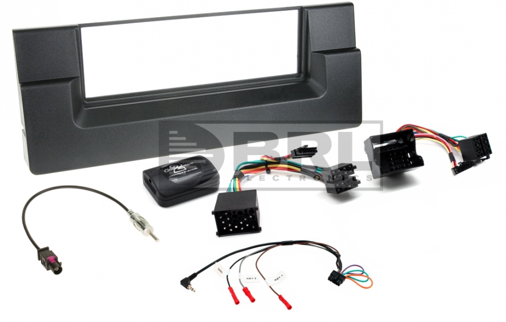 Ett installationskit som passar i BMW 5-Serie (E39) 95-03. Det är en komplett monteringslösning med en enkel-din monteringsram, i-Bus rattstyrningskontroll (17-polig pin och 40-polig pin) samt Fakra antennadapter.