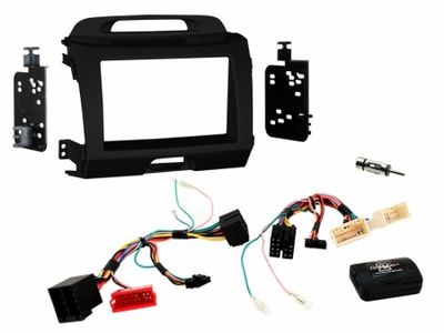 Ett installationskit för Kia. Det är en komplett monteringslösning med en dubbel-din monteringsram, resistivt rattstyrningskablage samt antennadapter. Enkel plug and play installation, så ingen kapning av ledningar krävs