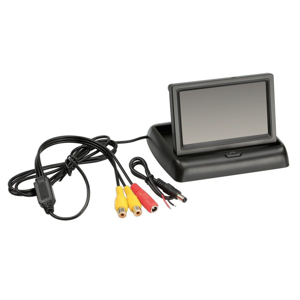 Näytössä on kaksi video RCA- sisäänmenoa ja resoluutio 480 (P) x 272 (V) RGB. Se tukee sekä 4:3 että 16:9 kuvasuhteita ja toimii sekä PAL- että NTSC-videosysteemien kanssa. Virtalähde on +12V DC ja liitäntä tapahtuu ACV-järjestelmäliitännän kautta irtonaisilla kaapeleilla. Punaiset ja mustat kaapelit ovat +12V sytytykselle ja maaliitännälle vastaavasti.