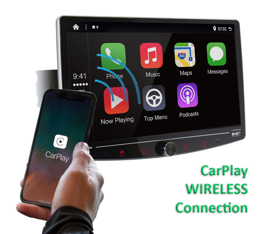 Langattoman Apple CarPlay- ja Android Auto -tuen ansiosta yhdistät puhelimesi muutamassa sekunnissa. Soita musiikkia, vastaanota puheluita, vastaa viesteihin tai seuraa navigointia. Kaikki suoraan näytöltä, täysin ilman kaapelia!