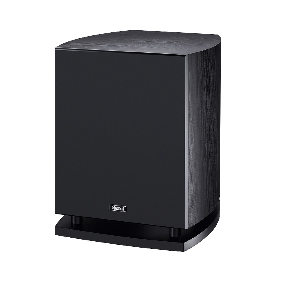 Trots att Magnat bestyckad den här aktiva subwoofern med ett långslagigt 12" element, så är formspråket på kabinettet väldigt diskret - för att inte tala om elegant. Det fiinns en mynning ovanför bottenplattan, där elementet är monterat och får en spridning ner längs golvet. På baksidan sitter dubbla Airflex-optimerade basportar.