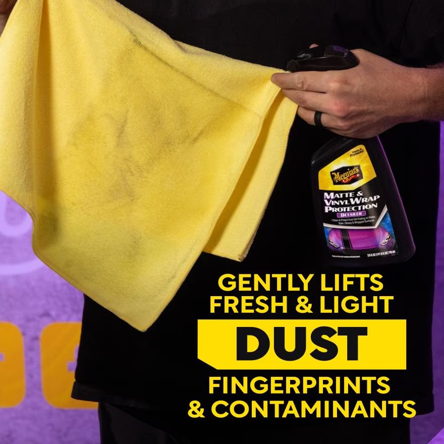 Meguiar's Matte & Vinyl Wrap Protection on nopeavaikutteinen detailer sinulle, joka haluat pitää wrapin, PPF:n tai lakan huippukunnossa pesujen välillä. Formula on suunniteltu herkille pinnoille, kuten matta ja satiini, joissa väärät tuotteet voivat helposti aiheuttaa epätasaisuuksia tai kiiltoeroja. Tässä saat sen sijaan tasaisen, puhtaan pinnan ilman raitoja, samalla kun pinta saa kevyen suojan UV-vaikutuksilta. Se toimii yhtä hyvin pölyn, sormenjälkien ja tuoreiden epäpuhtauksien poistamiseen kuin auton nopeaan virkistämiseen ennen seuraavaa ajoa.