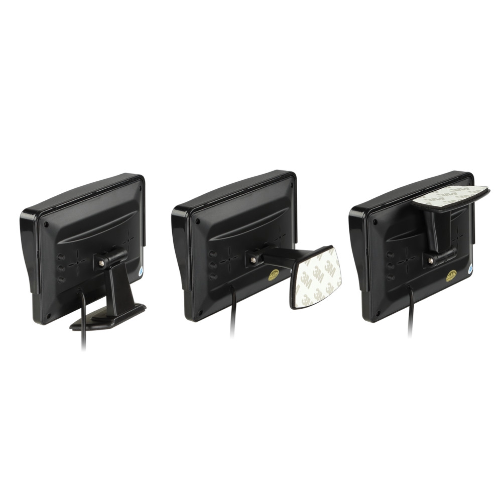Näytössä on muovinen rakenne, jossa on jalka, joka mahdollistaa sen helpon kiinnittämisen ruuveilla tai liimalla. Väri on musta ja antrasiitti, mikä antaa neutraalin ja huomaamattoman viimeistelyn, joka sopii useimpiin ympäristöihin. Näytössä on automaattinen video-inputtien tunnistus, mikä mahdollistaa lähteiden vaihtamisen ilman manuaalista säätöä. Takapaneelissa on asetuksia näytön mukauttamiseksi käyttäjän tarpeiden mukaan.