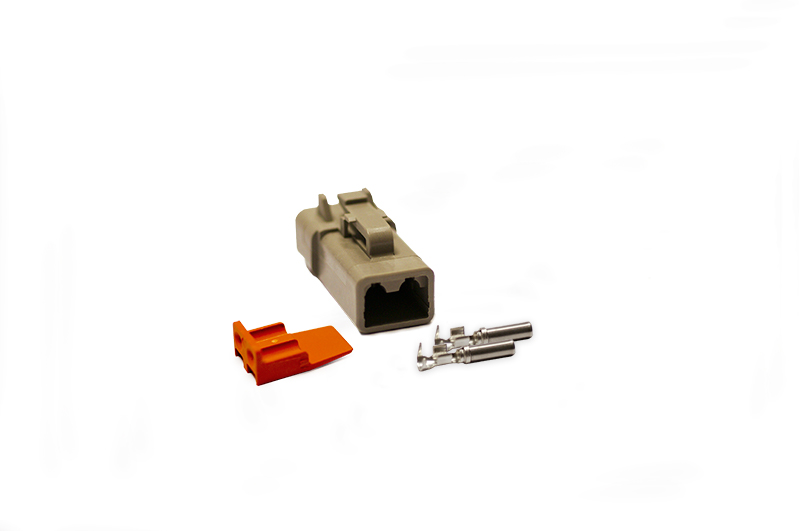 Helt vattentät Deutsch (DTP) kontakt, den vanligaste förekommande kontakten idag på alla typer av extraljus, LED-ramper samt arbetsbelysning på mer än 400W. För strömstyrkor upp till 25A.