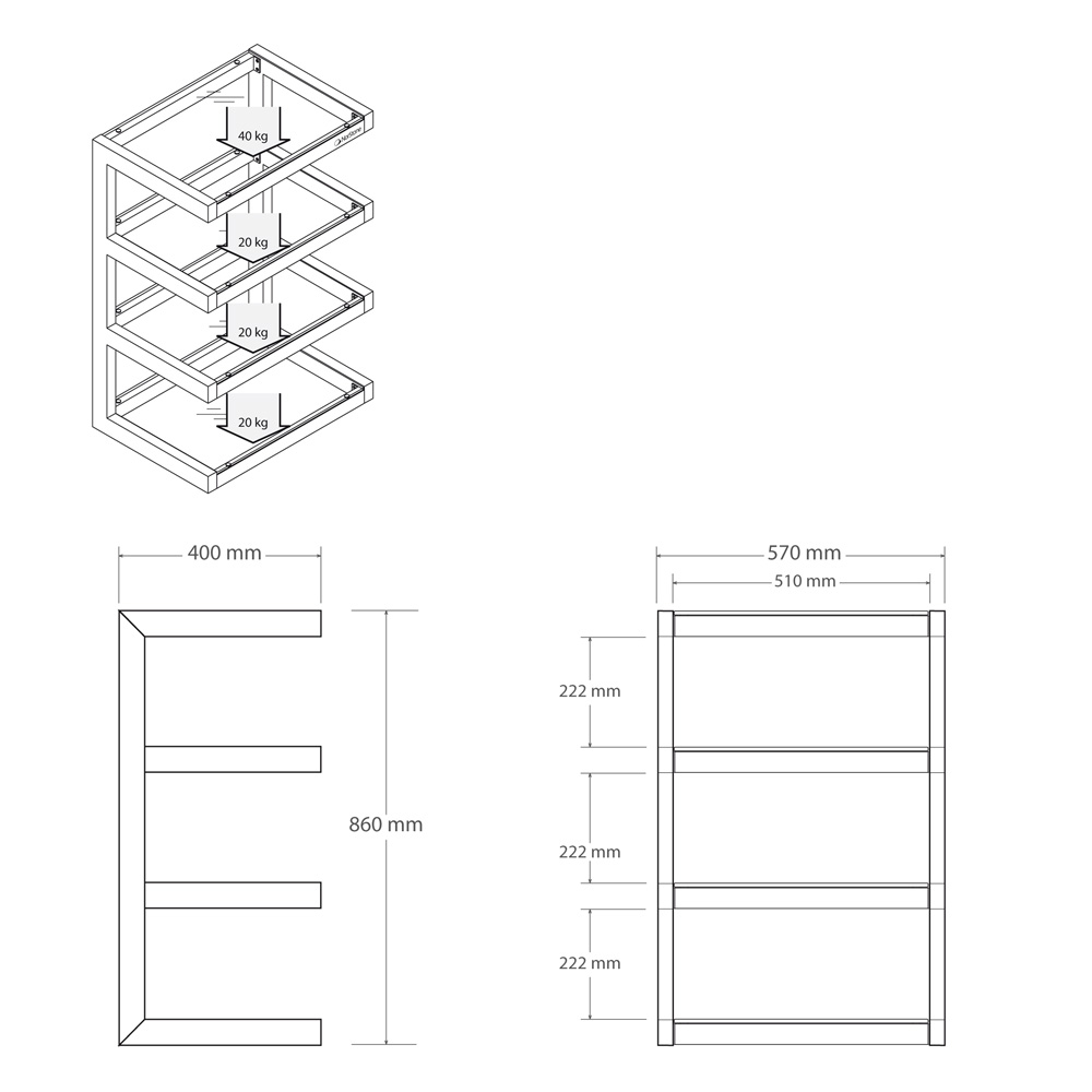 • Användbara hyllmått: 570 x 400 mm
