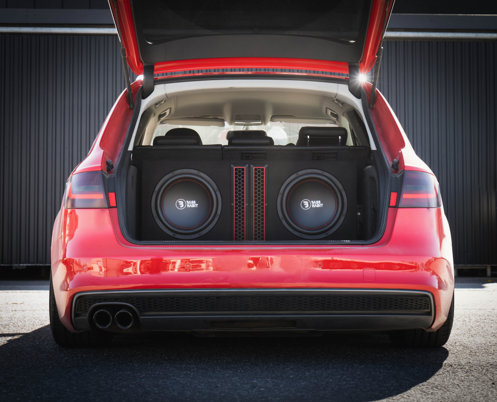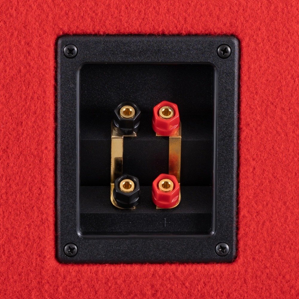 På tal om det: stryktålig är den med. Bland annat sitter 30 mm tjock MDF där elementen sitter. Det här är en låda som tål att spelas, helt klart. Designen är typiskt för Bass Habit! Oemotståndligt kaxig, med snyggt designade slotporter som markeras med den röda Bass Habit-färgen.