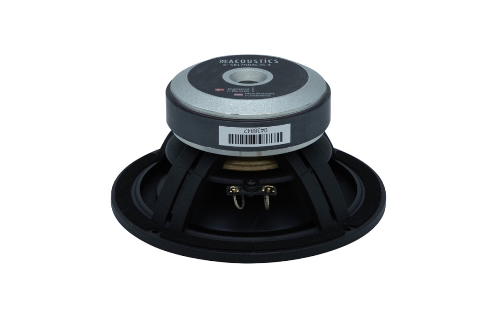 SB Acoustics SB17NBAC35-4 on 6-tuumainen basso/keskiäänielementti, jossa on geometrisesti vahvistettu alumiinikalotti ja ilmastoitu valualumiinikotelo, joka takaa vakaan kalvon liikkeen, pienen kompression ja hyvän transienttivasteen. Alhainen impedanssi 4 ohmia ja herkkyys 90 dB tekevät siitä sopivan pienempiin bassoelementteihin tai keskiääniin kaksitie- tai monitiejärjestelmissä, joissa halutaan selkeää ja hallittua ääntä.