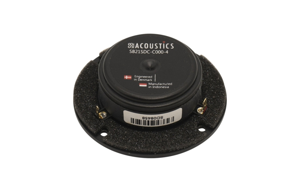 SB Acoustics SB21SDC-C000-4 on suuri reunus-/soft dome -diskantti, joka tarjoaa lisää akustista säteilyä ja sopii erinomaisesti kaksitiejärjestelmiin. Siinä on kaksoistasapainoiset kompressiokammiot paremman dynamiikan saavuttamiseksi, kyllästyskontrolloitu moottorijärjestelmä, joka vähentää säröä, sekä kuparikapseli, joka pienentää induktanssia ja vaihevirhettä. Matalan resonanssitaajuuden ja korkean herkkyyden ansiosta se tarjoaa selkeän ja dynaamisen diskantin toiston alkuperäisjärjestelmissä tai omissa rakennelmissa.