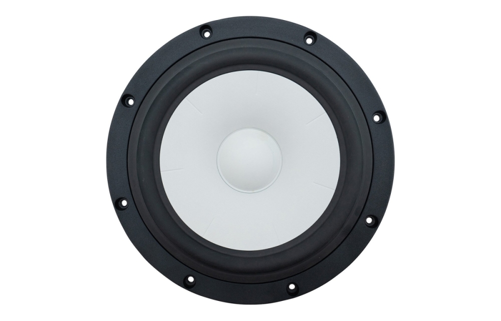 Geometrisesti vahvistettu keraaminen alumiinikartio yhdistää keveyden ja korkean jäykkyyden, mikä tuottaa puhtaan ja hallitun äänen ilman ei-toivottuja resonansseja. Moottorijärjestelmän oikosulkurenka vähentää säröä ja parantaa transienttivastetta, kun taas pehmeä kumikiinnitys mahdollistaa nopean ja tarkan liikkeen. Ilmastetut napapylväät ja alumiinirunko vähentävät ilman kompressiota ja lämpötilan nousua, mikä parantaa dynamiikkaa ja kestävyyttä.