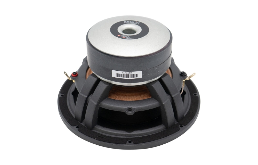 Elementin mineraalitäytteinen polypropeenikartio tarjoaa jäykän ja hallitun kalvopinnan, joka minimoi ei-toivotut resonanssit. Pitkäiskuisen rakenteen yhdistelmä matalavaimennetun kumiripustuksen kanssa antaa suuren liikeradan ja hyvän transienttivasteen. Ilmastetun alumiinikorin ja moottorijärjestelmän ansiosta lämpötila pysyy alhaisena, mikä takaa vakaan suorituskyvyn myös korkeilla tehotasoilla. Tämä tarkoittaa, että saat voimakkaan ja tarkan basson, joka sopii sekä kompakteihin että keskikokoisiin subwoofer-koteloihin.