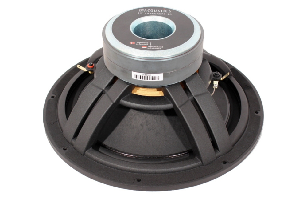 SB Acoustics SB34NRX75-16 on 12-tuumainen passiivinen bassoelementti (passiivinen radiotaajuus) korkealla impedanssilla (16 Ω) ja suurella kartion pinta-alalla, erityisesti suunniteltu avoimiin baffleihin ja portittomiin järjestelmiin. Matala resonanssitaajuus tarjoaa syvemmän basson ilman porttia, kun taas kestävä rakenne valualumiinikotelolla ja kovalla paperikartiolla takaa pitkän käyttöiän ja vakaan suorituskyvyn.