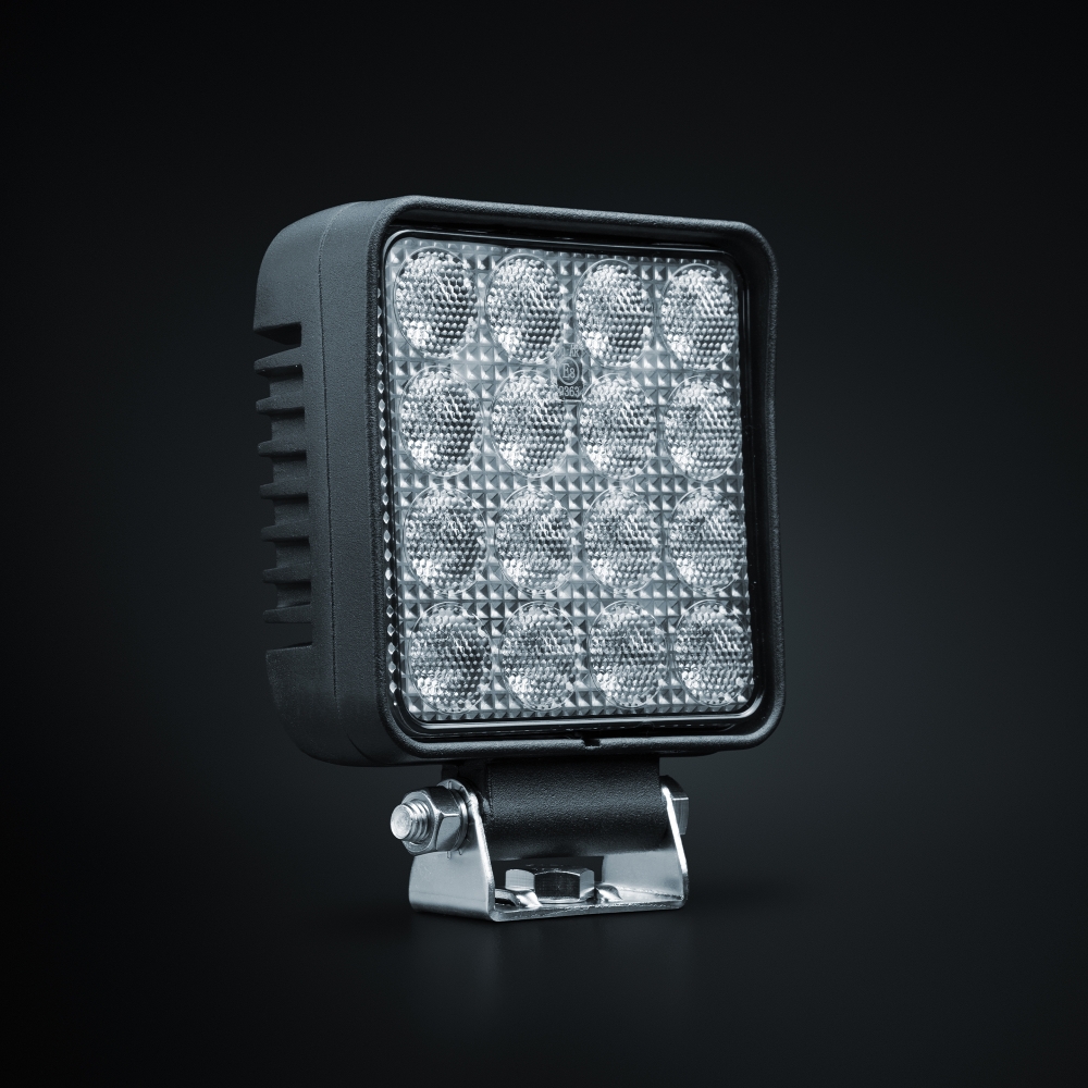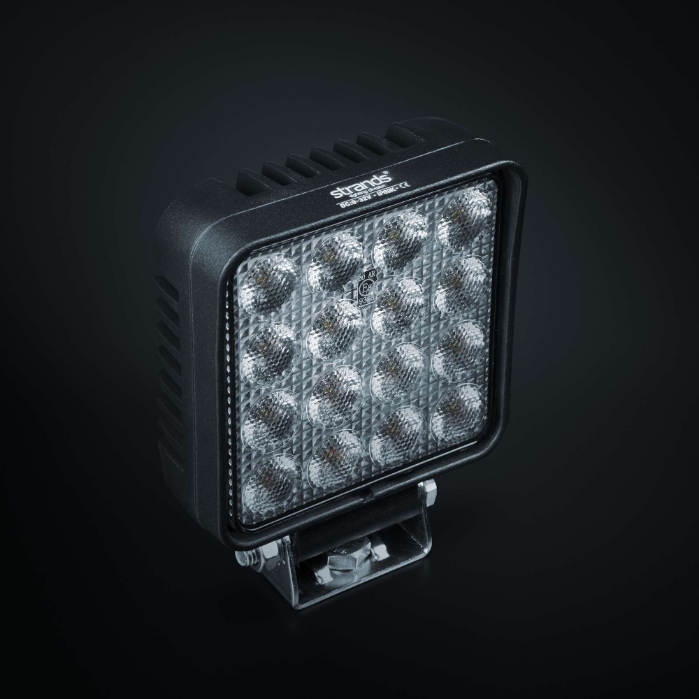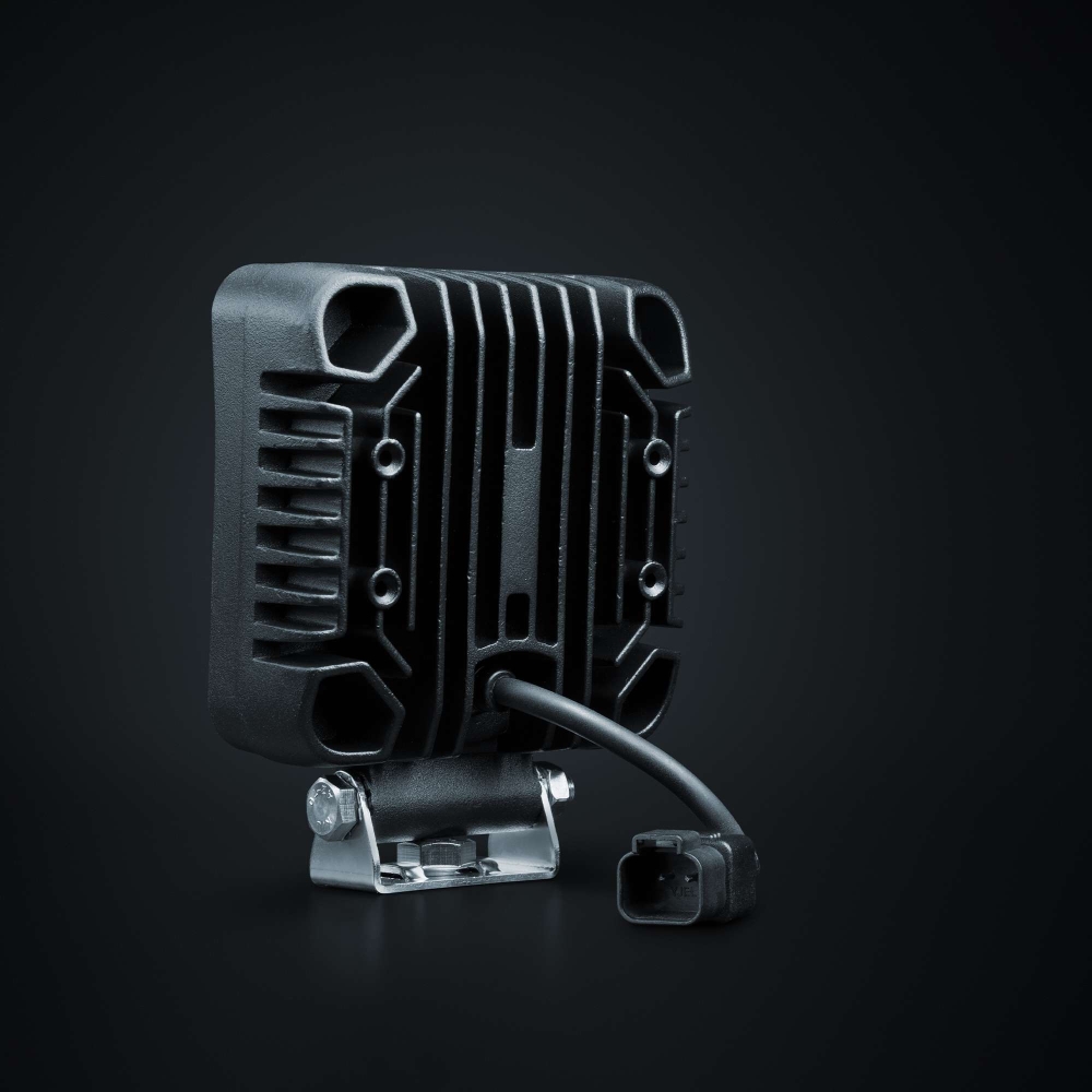 Mustaksi maalattu alumiininen kotelo ja polykarbonaattilinssi. Materiaalivalinnat tekevät siitä kestävän ja iskunkestävän.