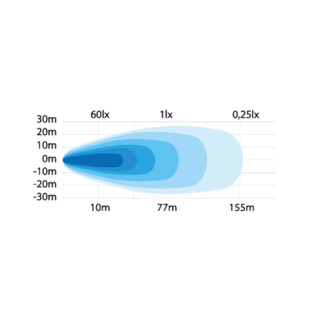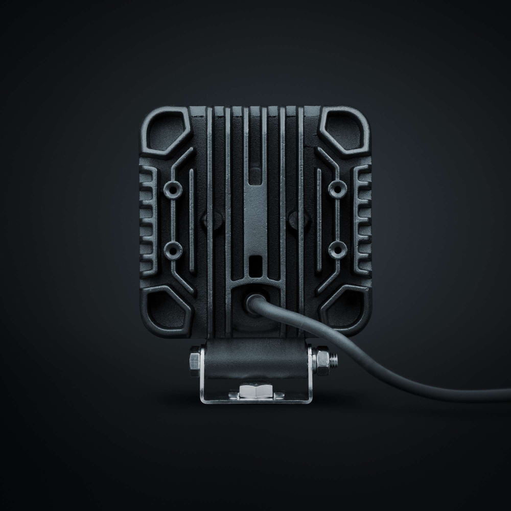Mustaksi maalattu alumiininen kotelo ja polykarbonaattilinssi. Materiaalivalinnat tekevät siitä kestävän ja iskunkestävän.