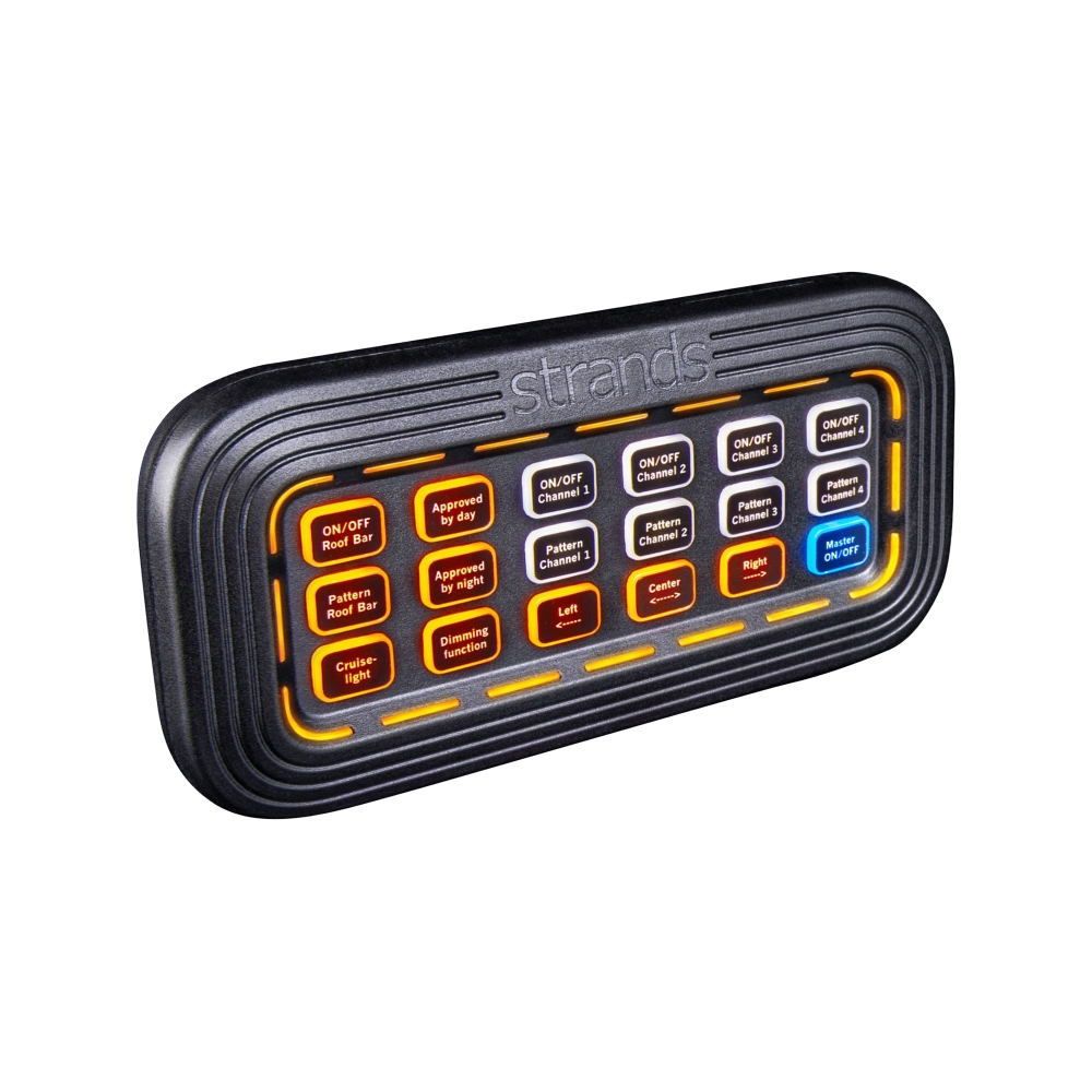 Ohjauslaite on väriteemattu. Yhdeksän painiketta on oransseja, kahdeksan valkoisia ja yksi sininen. Oranssit painikkeet on varattu Cruise Light -välähdyspilareille ja ne voivat esimerkiksi vaihtaa varoitusvalomallia. Useimmissa toiminnoissa painikkeet korostetaan käytön aikana, ja varoitusmalli näkyy LED-valoissa ohjauslaitteen ympärillä. Saat myös painikkeet päivävaiheen, yötilan ja Cruise Light -tilan vahvistamiseen.