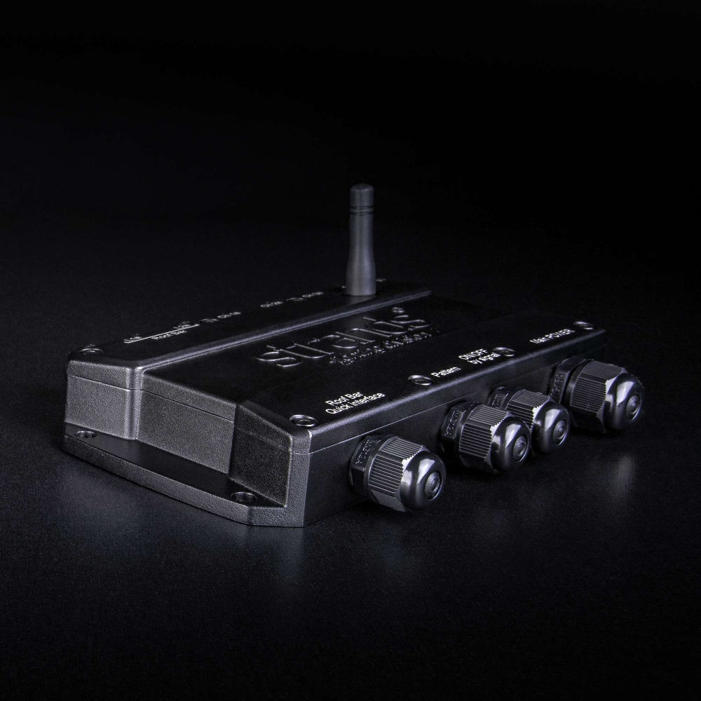 Kuusi lähtökanavaa ohjataan joko langattomasti tai signaalikaapelilla. Käytä ohjauslaitetta langattomasti paristolla (4x AAA, ei sisälly), tai sijoita se ohjaamoon tai liitä mukana olevaan USB-kaapeliin. Releenkotelo kestää kovia olosuhteita, on vedenkestävä, IP-luokiteltu IP67:n mukaan, ja kumitiivisteet suojaavat kaapeleita.