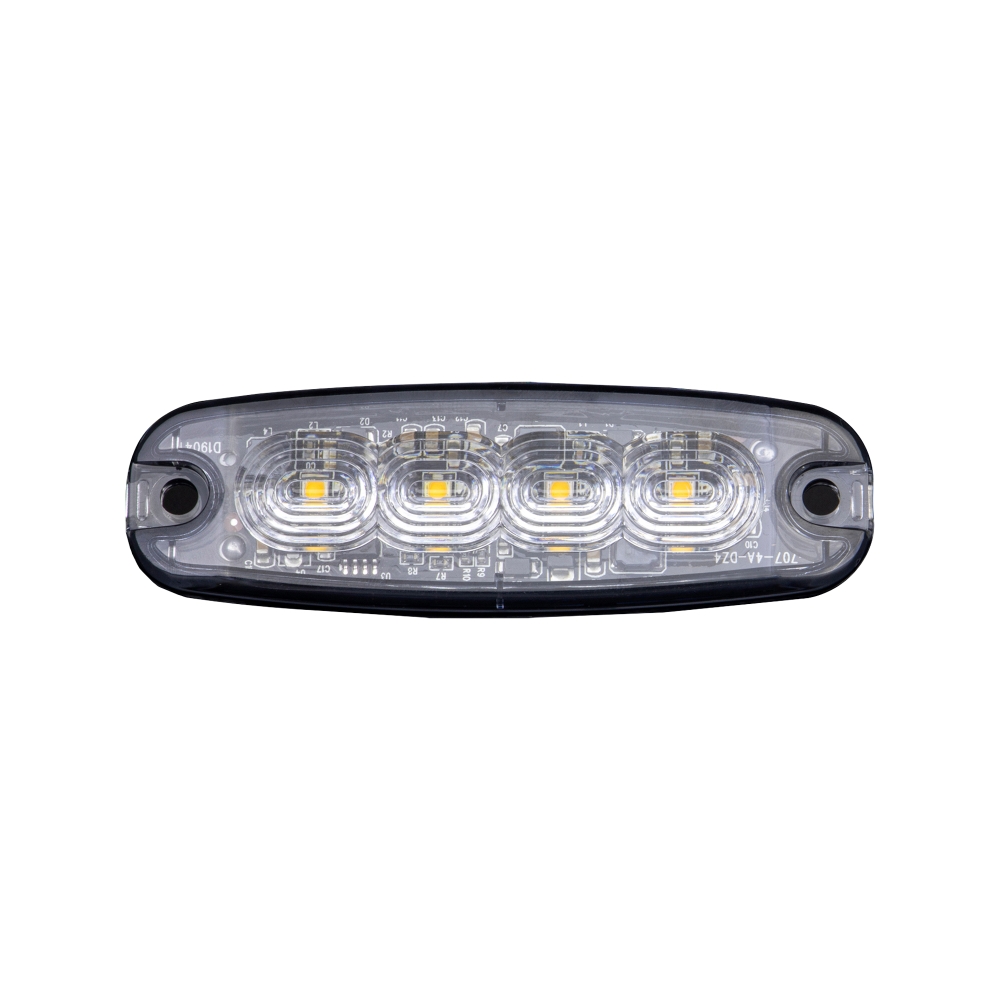 Salamavalot erittäin kapeassa muodossa, jossa on 4 LEDiä. Pyöreä miellyttävä muoto, jossa näkymättömät reunat sulautuvat hyvin ajoneuvon pohjaan. Suunnittelu ja toiminto yhdessä tuotteessa. ECE R65, EMC ECE R10. 400 mm kaapeli. Sarjaan kuuluu kaksi muuta kokoa – 3 ja 6 LEDiä.