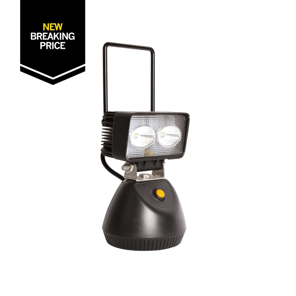 Kannettava työvalo kahdella diodilla, 700 lumenia, kannettava ja voidaan asettaa pinnalle joustavaan käyttöön.